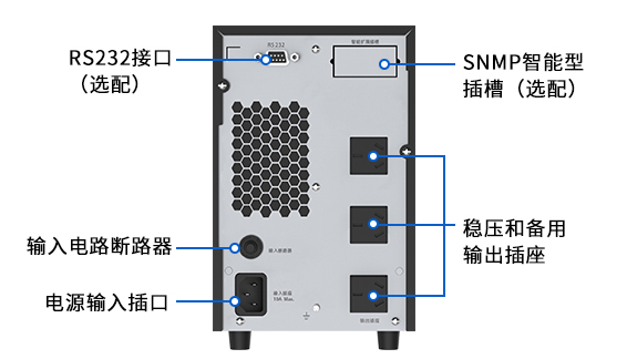 用戶可通過LCD屏幕實(shí)時(shí)查詢輸入輸出電壓,電池電量,負(fù)載比例,市電狀態(tài)和停電狀態(tài),故障指示等實(shí)時(shí)信息。
