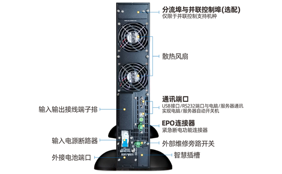 可安裝至普通的網(wǎng)絡機柜、服務器機柜等里面工作,節(jié)省空間。該機型占用空間高度為2U,內置蓄電池,停電后延時10分鐘左右。